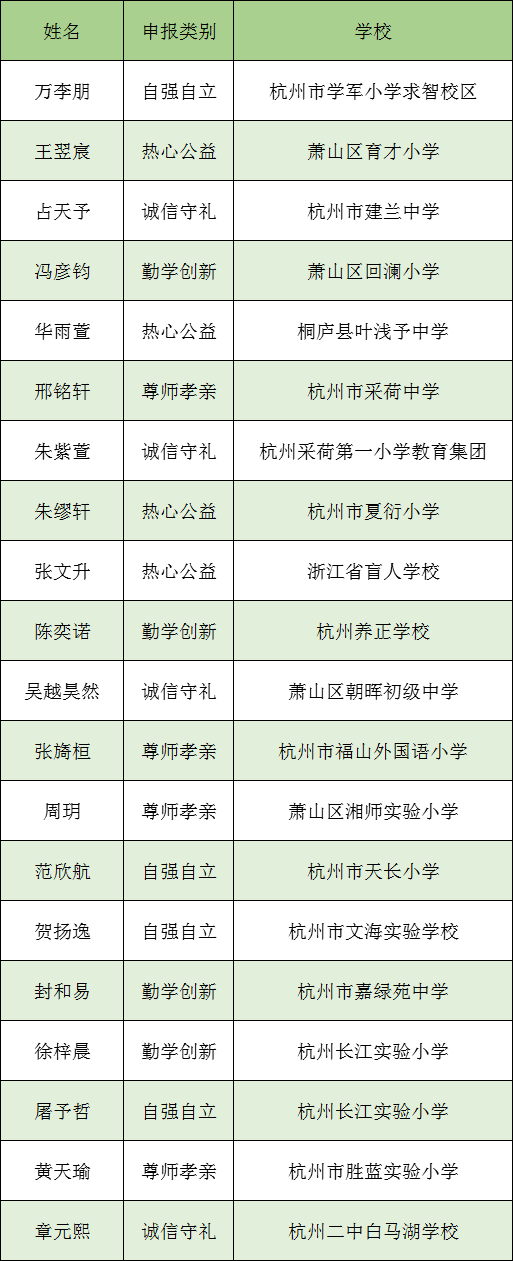 杭州市第十六屆“美德少年(新時(shí)代好少年)”