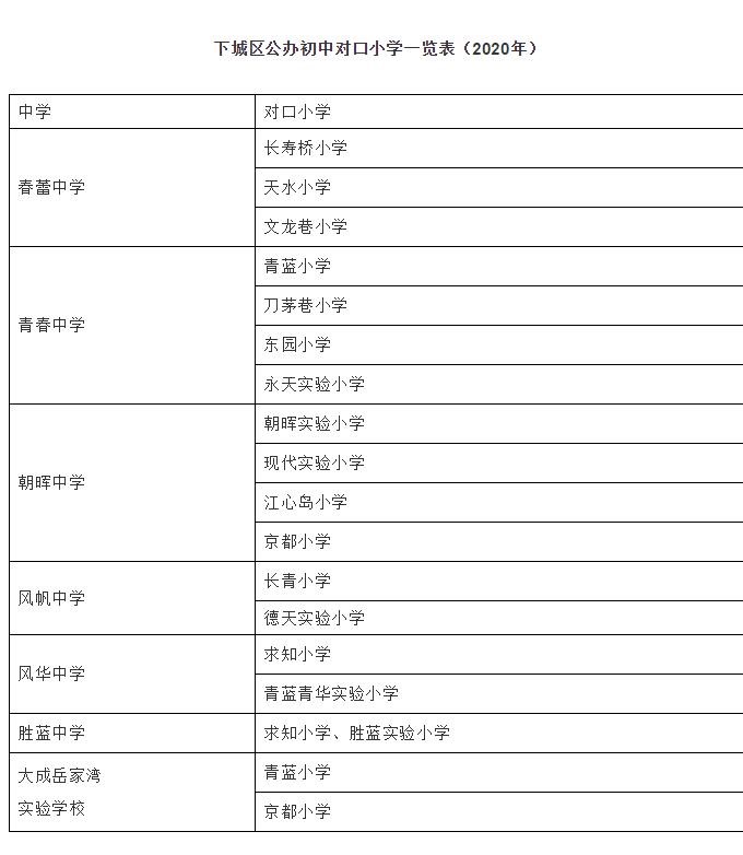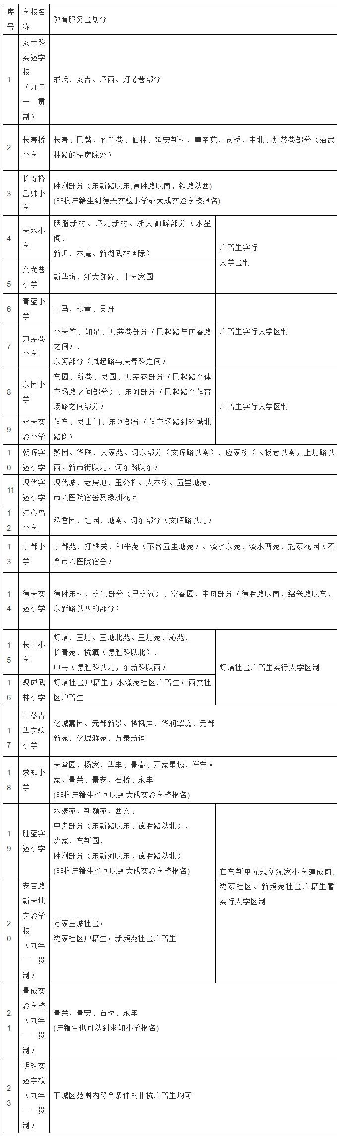 下城區(qū)公辦小學(xué)教育服務(wù)區(qū)劃分一覽表(2020年)