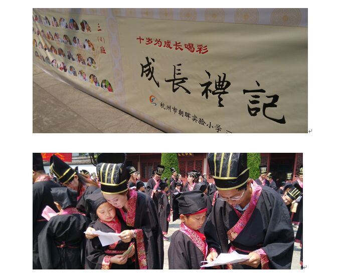 《杭州超限教育中心瑪林2015年5月27日訊》5月22日,杭州市朝暉實(shí)驗(yàn)小學(xué)全體三年級學(xué)生在杭州孔廟,參加了祭孔活動暨“十歲,為成長喝彩”成長禮。學(xué)生集體吟誦《十歲成長禮誓詞》;家長孩子共讀親子信;校長祝!164位學(xué)生和家長,一起身著漢服全程參加典禮。