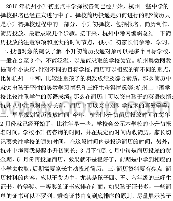 杭州小升初簡(jiǎn)歷投放注意事項(xiàng)。