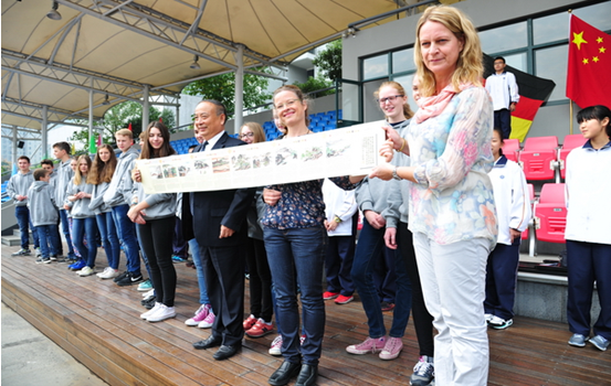 在校期間,托梅恩學校來訪師生參觀了學校的教育教學設(shè)施, 并到結(jié)對學生的班級聽課學習、交流。他們還與我校師生一同參加了第53屆田徑運動會入場式和各項比賽。德國師生游覽杭州名勝,了解杭州的歷史文化,并入住我校結(jié)對學生家中體驗中國學生家庭生活。