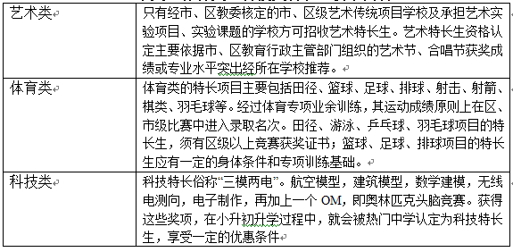 藝術(shù)類、體育類、科技類特長(zhǎng)生要求內(nèi)容