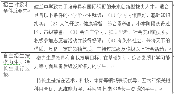 杭州建蘭中學招生條件與要求、
