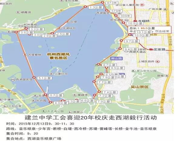 《杭州超限教育中心楊曉2015年12月28日訊》杭城近來喜事連連,G20峰會落戶西子,我們建蘭中學建校整20周年!這對全體建蘭人來講真是一件值得慶祝的事。這不,為迎接雙20的到來,期待我們的校慶大典即將舉行,我校工會特意組織了本次走西湖毅行活動!