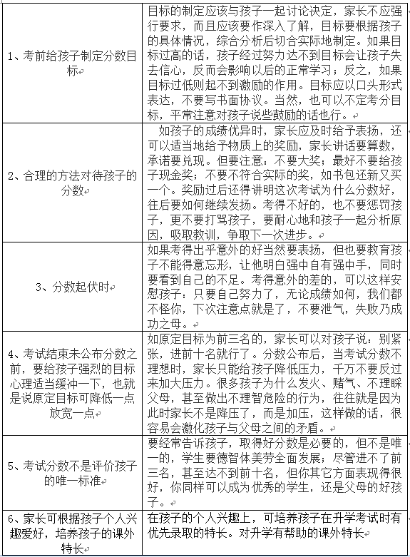 《杭州超限教育中心楊曉2015年12月29訊》杭州小升初,說到底是孩子學(xué)習(xí)成績(jī)和課外特長(zhǎng)的競(jìng)爭(zhēng)。因此,分?jǐn)?shù)對(duì)孩子來說就像是學(xué)生的“命根”。孩子會(huì)根據(jù)考試分?jǐn)?shù)的落差而產(chǎn)生情緒上的落差,這對(duì)孩子是百害無一利的,家長(zhǎng)如何合理的、理性的對(duì)待孩子的學(xué)習(xí)成績(jī)呢?
