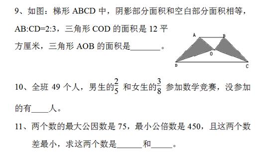 《杭州超限教育中心楊曉2016年1月18訊眼看2016年的小升初已經(jīng)在開(kāi)始接收簡(jiǎn)歷了,小升初慢慢的也會(huì)越來(lái)越激烈。建蘭中學(xué)每年投遞簡(jiǎn)歷報(bào)名的人數(shù)是越來(lái)越多,小升初時(shí),建蘭中學(xué)會(huì)有一方面的學(xué)習(xí)成績(jī)測(cè)試,針對(duì)考試哪一方面的題目,特分享了一部分往年的小升初考試試題,家長(zhǎng)可參考一下。