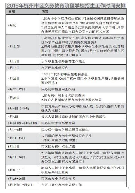 《杭州超限教育中心李林2016年2月18日訊》近日,杭州市教育局為市范圍內(nèi)的廣大中小學(xué)校的招生時(shí)間安排發(fā)出通知,安排如下: