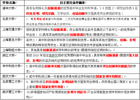 四、我國(guó)部分重點(diǎn)大學(xué)自主招生條件摘錄。