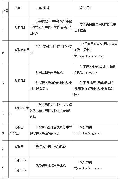 《杭州超限教育中心李林2016年04月22日訊》近日,杭州教育局發(fā)布了2016年杭州城區(qū)各個民辦初中的招生時間安排表,各位孩子家長請予以及時掌握并咨詢,為孩子的擇校提供好的信息準備。