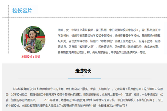 《杭州超限教育中心李林2016年05月03日訊》杭二白馬湖初中部近幾年來,在民辦教育行列積極向前發(fā)展,取得了良好的成就。近日微訪周虹這樣發(fā)展教育: