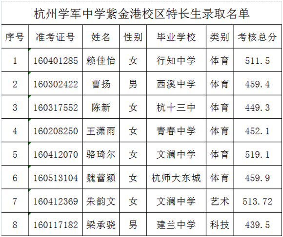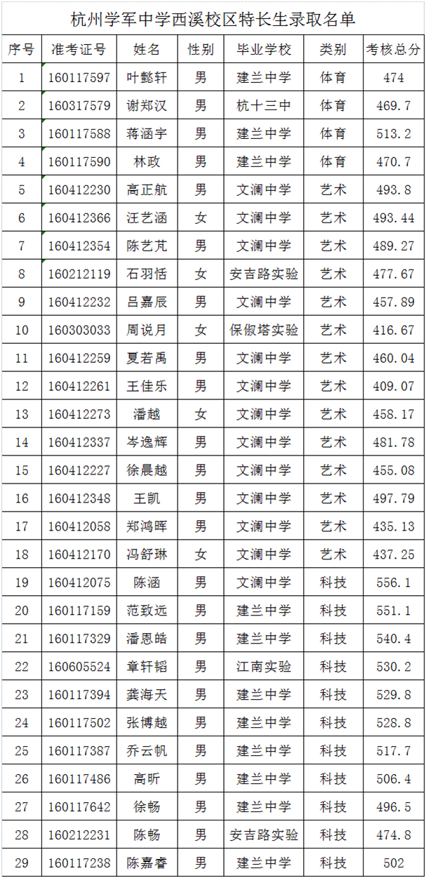 《杭州超限教育中心李林2016年06月30日訊》今日,學(xué)軍中學(xué)公布了2016年藝術(shù)生錄取名單,錄取特長生人數(shù)37人,詳細(xì)名單如下。