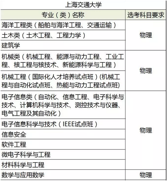 上海是優(yōu)質(zhì)大學(xué)比較集中的地方,以上海為例,這些大學(xué)對高考生選考科目的要求,比較具有代表性。我們選擇個別學(xué)校的部分專業(yè)來看一下選考學(xué)科和學(xué)校的招生專業(yè)。未來參加新高考的家長和同學(xué)在考慮和選擇專業(yè)時,可以此做參考!