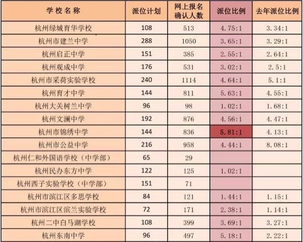 2016年杭州小升初派位報名確認人數(shù)為8835人,派位計劃人數(shù)2537人,下圖的2016各個杭州民辦初中的派位比例:
