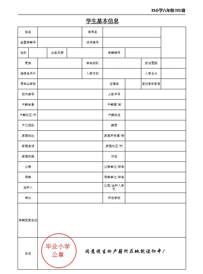 3.學(xué)生基本信息表:由畢業(yè)小學(xué)開具。