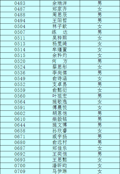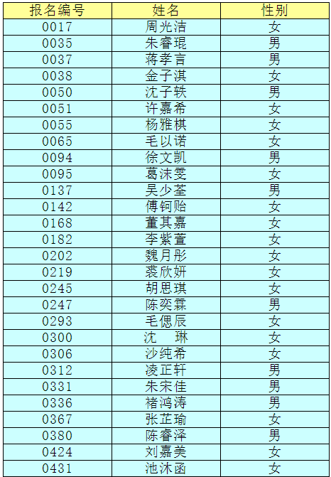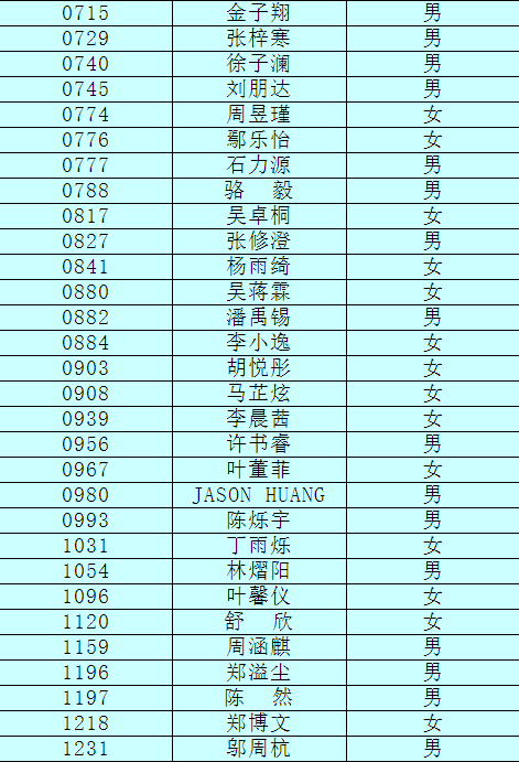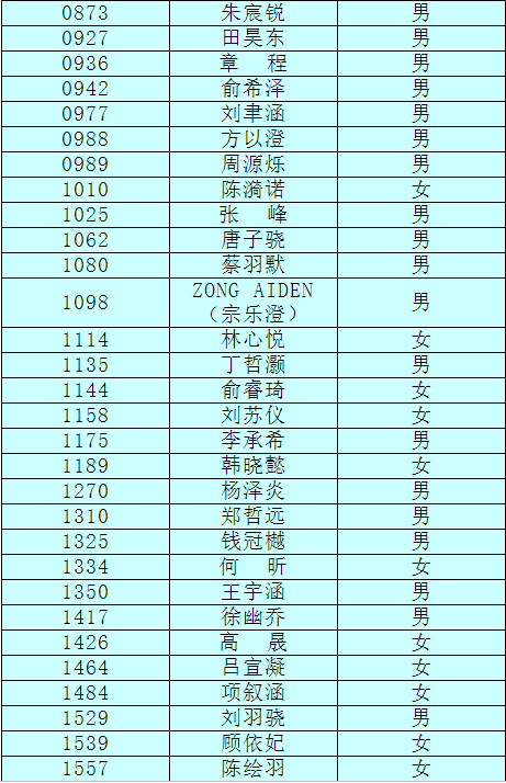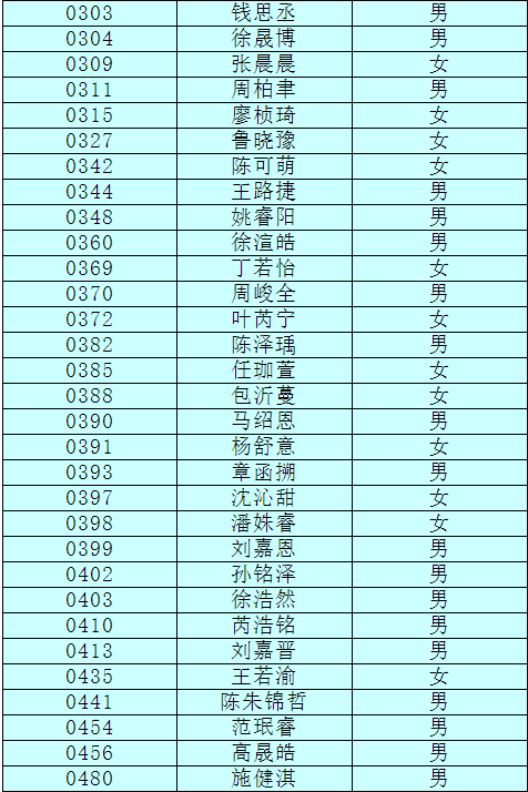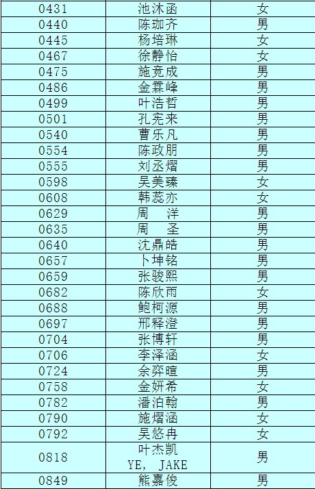 2.以下新生請(qǐng)于4月17日下午15:00至16:30簽訂《就讀杭州市崇文世紀(jì)城實(shí)驗(yàn)學(xué)校承諾書(shū)》并繳費(fèi),逾期視為放棄。