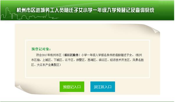2、外地戶籍子女入讀公辦:預(yù)登記入口 備注:目前該登記入口針對(duì)城區(qū)為杭州主城區(qū)以及蕭山、余杭區(qū)預(yù)登記