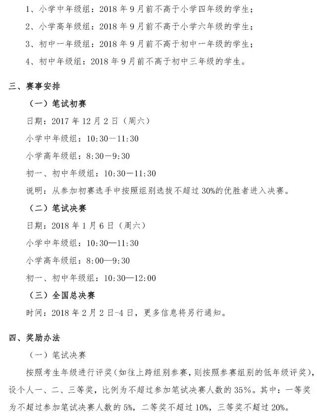 4、初中組:2018年9月前不高于初中三年級(jí)的學(xué)生。