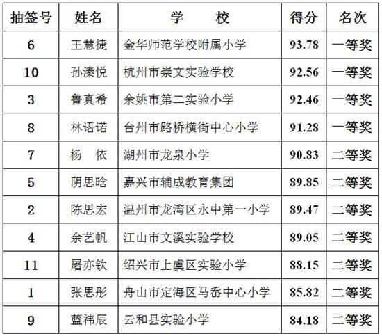 浙江省中小學(xué)生“浙江好家風(fēng)”演講比賽總決賽選手獲獎名單(小學(xué)組)