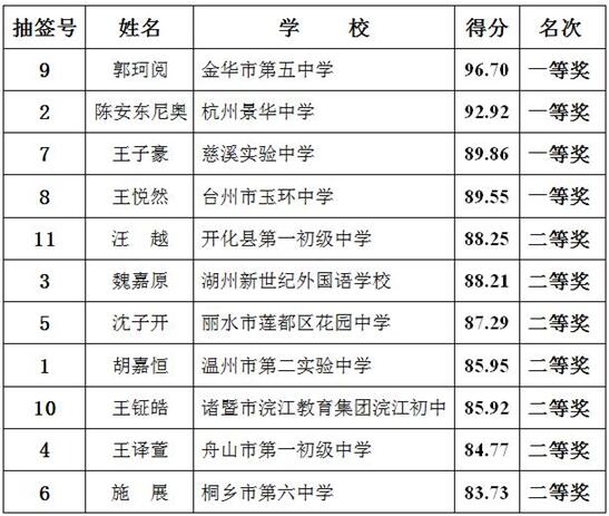 浙江省中小學(xué)生“浙江好家風(fēng)”演講比賽總決賽選手獲獎名單(中學(xué)組)